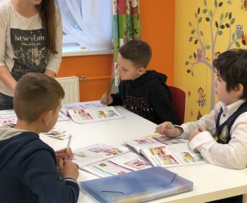 Nuestros pequeños estudiantes se sumergen en un ambiente creativo y amigable, donde el profesor se convierte en un verdadero amigo del estudiante. El profesor trata a cada niño con atención, lo que promueve el desarrollo de la autoestima, la independencia, la sociabilidad y la confianza en el éxito.